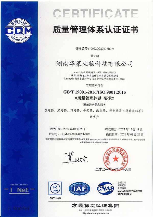 質(zhì)量管理體系認(rèn)證證書